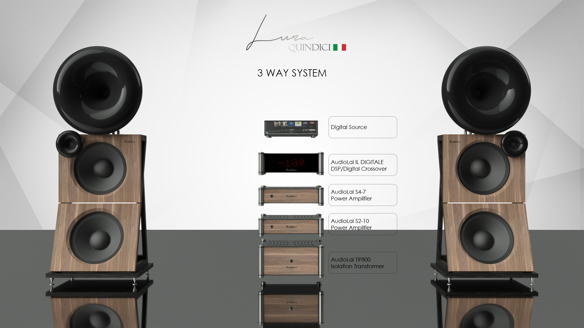 Il sistema LURA QUINDICI si distingue per la sua configurazione multiamplificata: grazie all’impiego di amplificatori AudioLai, un processore digitale di segnale e un crossover digitale, non è necessario utilizzare crossover passivi. Questa soluzione innovativa permette di sfruttare al massimo le capacità dei driver, offrendo una flessibilità totale nel gestire la risposta in frequenza, l’allineamento temporale e di fase, e la gestione dell’impulso, per un’esperienza d’ascolto unica e adattabile a qualsiasi ambiente.